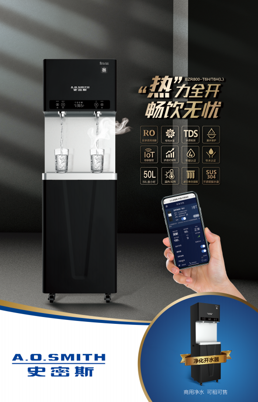 史密斯 BZR800-T6H 步进式电开水器及其配套商用净饮一体机 温水直供/热32L双龙头